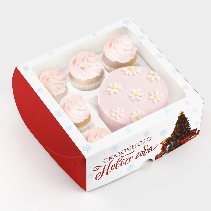 Доставка Коробка для бенто-торта и капкейков с окном "Сказочный Новый год" 25х25х10 см из магазина в вашем городе: