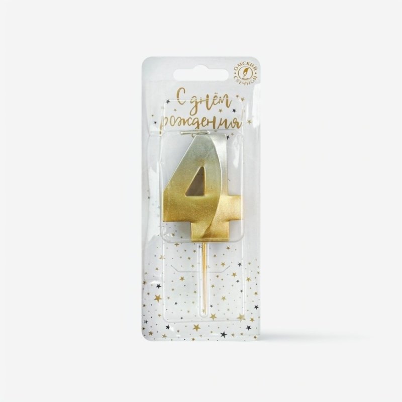 Доставка Свеча декоративная Цифра "4" Золото-Серебро из магазина в вашем городе: