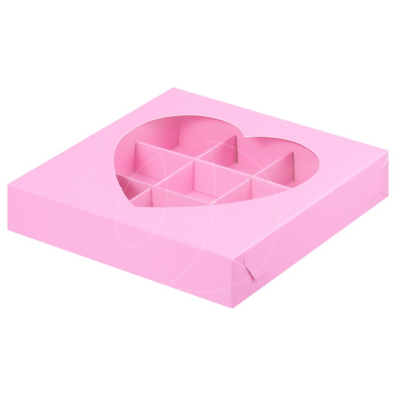 Доставка Коробка на 9 конфет с окном "Сердце" розовая из магазина в вашем городе: