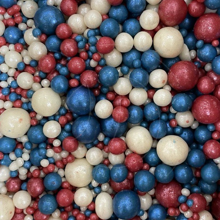 Доставка Посыпка кондитерская из дутого риса жемчуг "Красный, серебро, синий" 50 г из магазина в вашем городе: